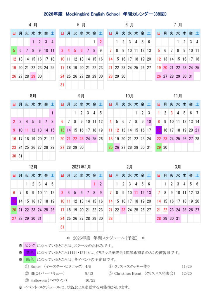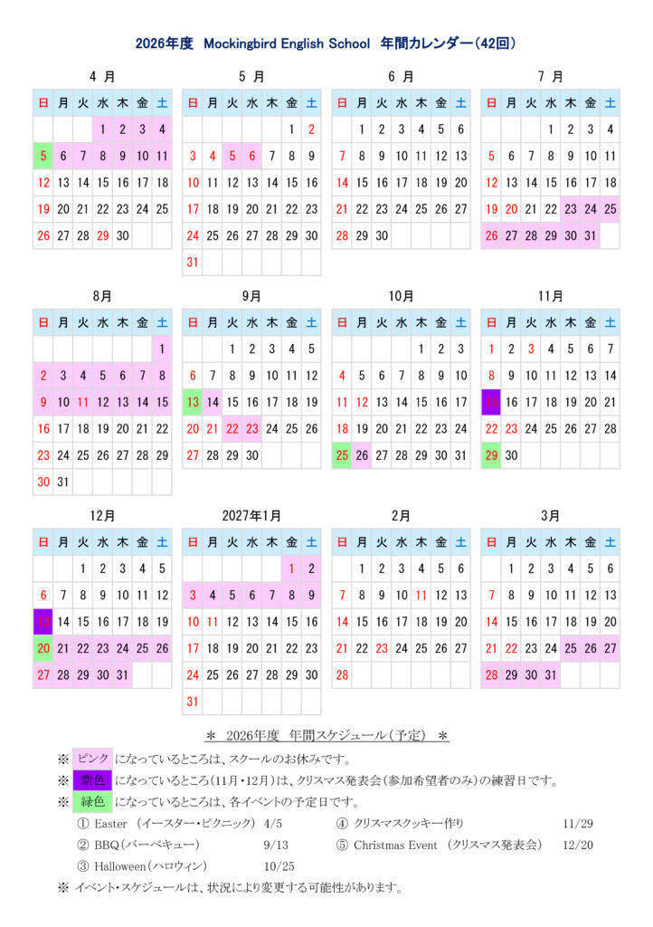 レッスンの年間カレンダーはこちらから